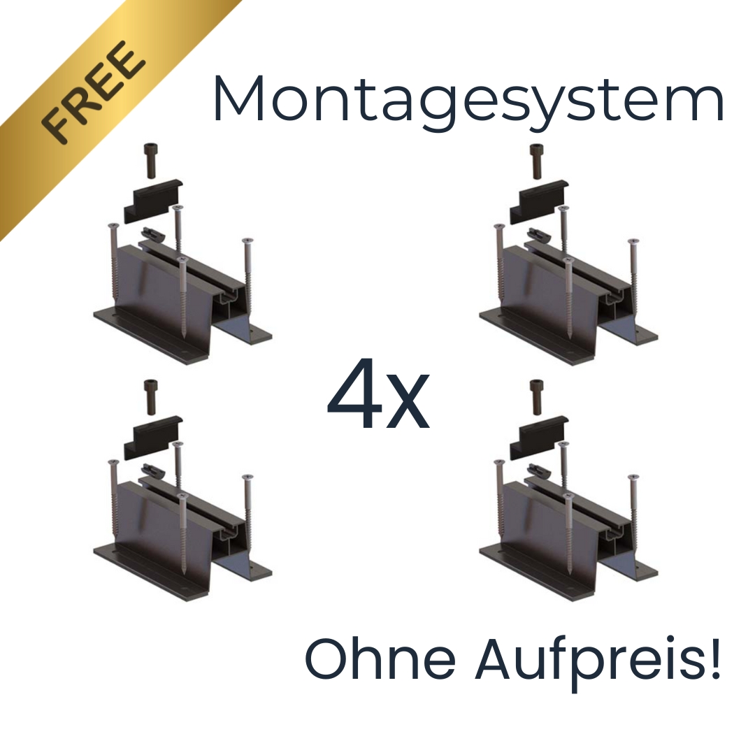 - 4000Wp Gesamtleistung aus 8 bifazialen Hochleistungsmodulen