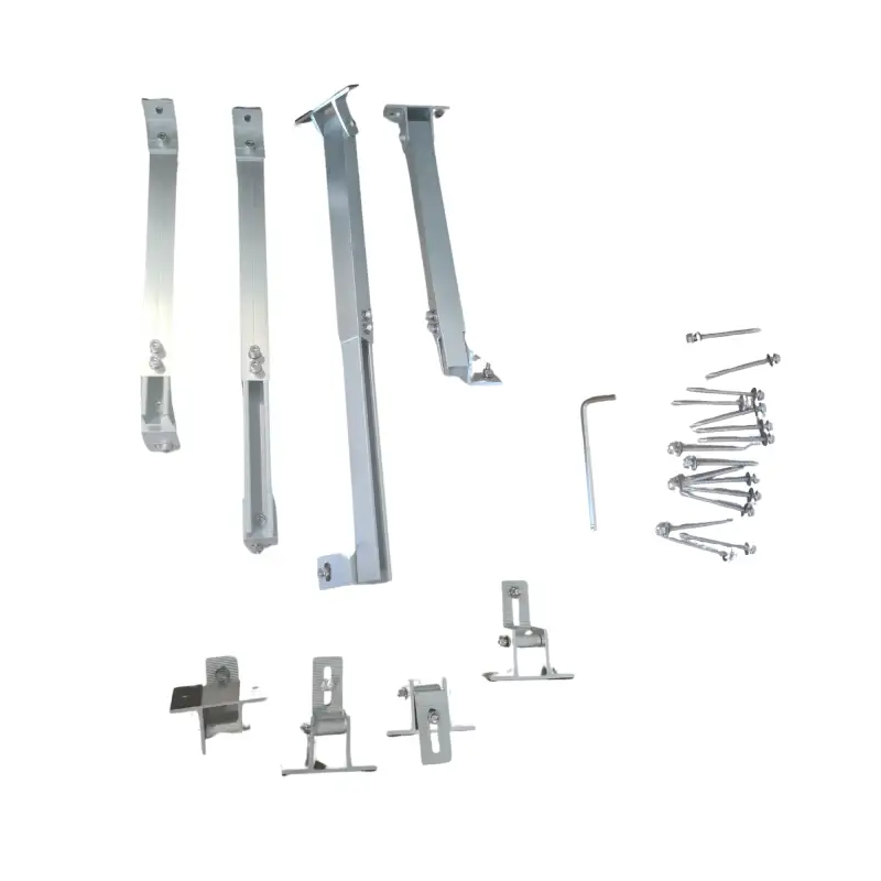 Unsere verstellbare Aluminium Aufständerung für zwei Solarmodule ist die perfekte Wahl für Montagen auf Flachdächern, Carports oder im Garten. Mit einem einstellbaren Neigungswinkel von 15 bis 30 Grad und hochwertigem AL6005-T5 Aluminium bietet sie maximale Flexibilität und Stabilität – auch unter rauen Wetterbedingungen.