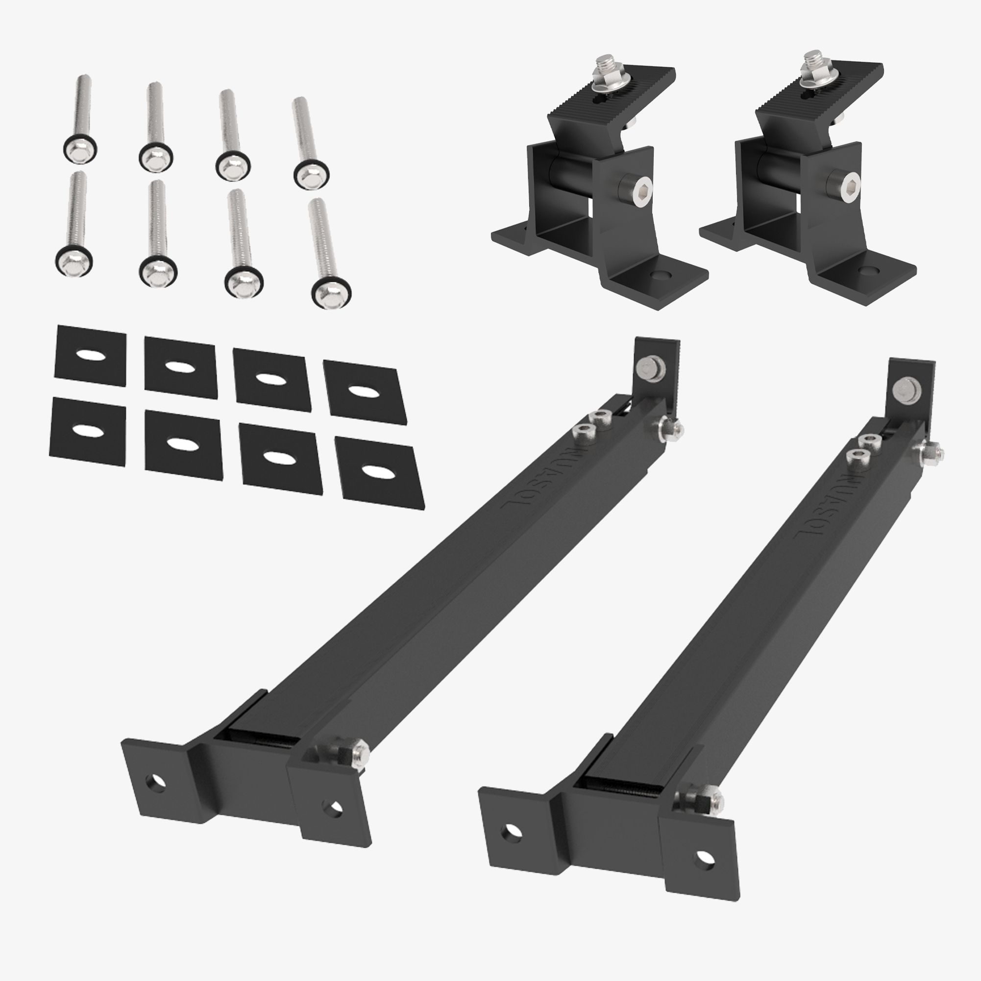 Mit der NuaSol verstellbaren Halterung 15–30 Grad in Schwarz montieren Sie Ihre Solarmodule sicher und flexibel. Dank des verstellbaren Neigungswinkels können Sie die Ausrichtung optimal anpassen und so die Energieausbeute maximieren.